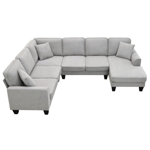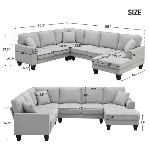 108*85.5" Modern U Shape Sectional Sofa, 7 Seat Fabric Sectional Sofa Set with 3 Pillows Included for Living Room, Apartment, Office,3 Colors