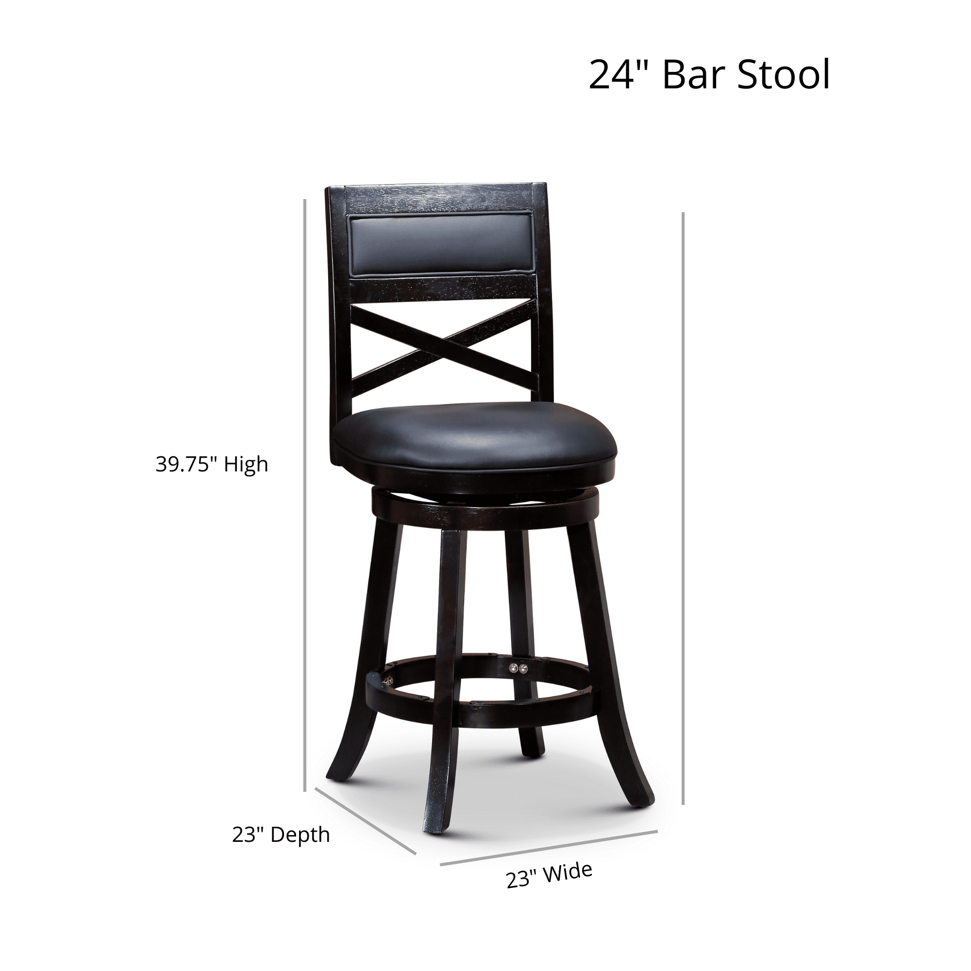 STYLISH COLORS & FINISHES: The classic X back design is complemented by the padded upholstered bonded leather or fabric seat and gently flared leg. It is available in a cherry, natural or espresso or weathered gray finish and a variety of bonded leather or fabrics seats. These sophisticated stools are sure to add comfort and style to your kitchen or bar area.