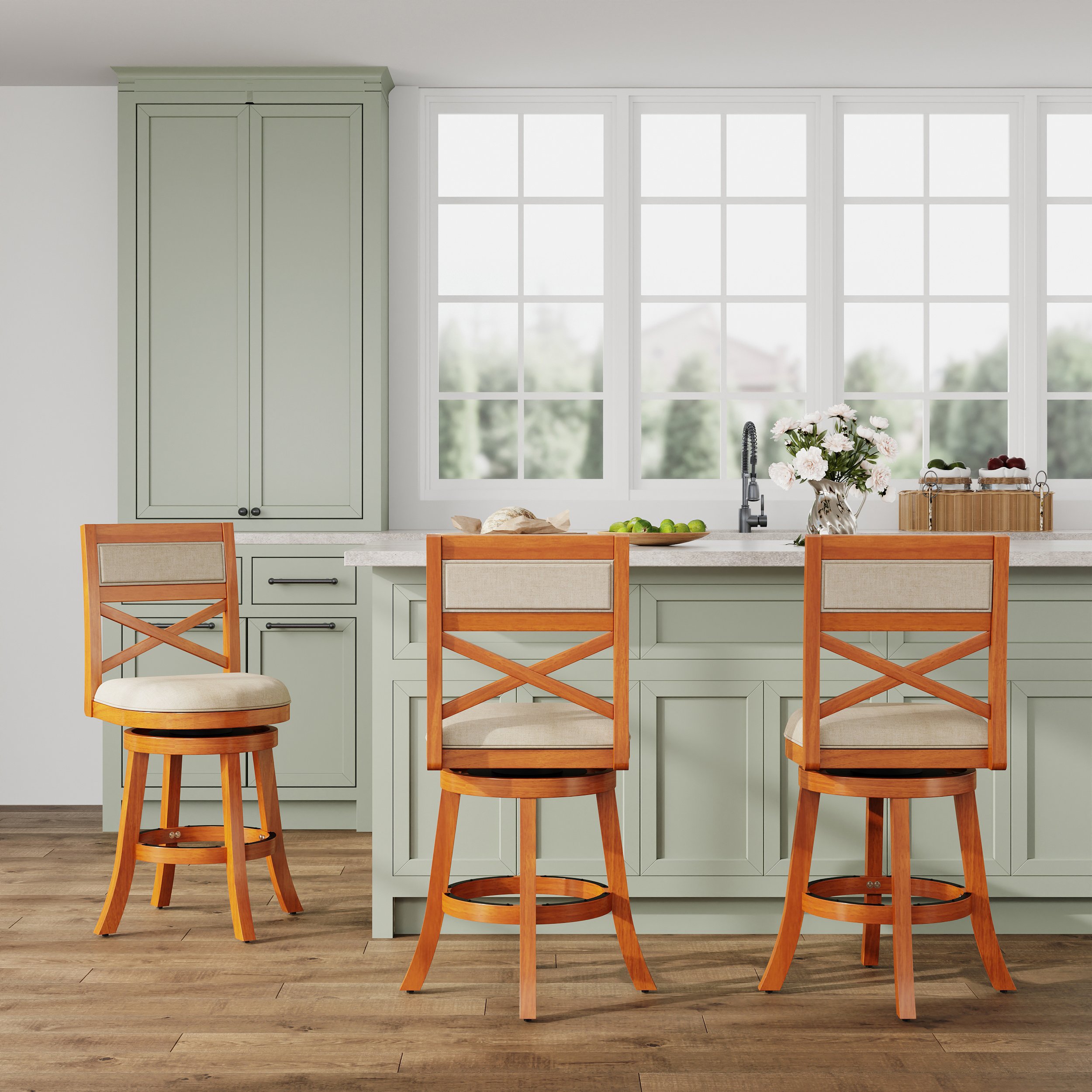 Home > 24" Counter Height X-Back Swivel Stool, Natural Finish, Beige Fabric Seat