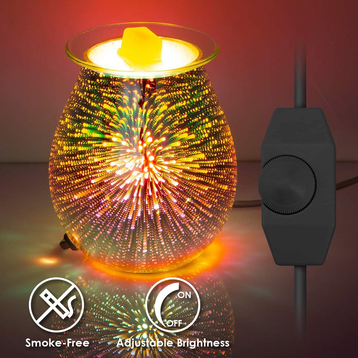 *3D Fireworks Elegant Design*:Designed with 3D Effect Fireworks Starburst. Our wax warmer not only provide you with lighting; but also created a 3D firework romantic atmosphere for you.