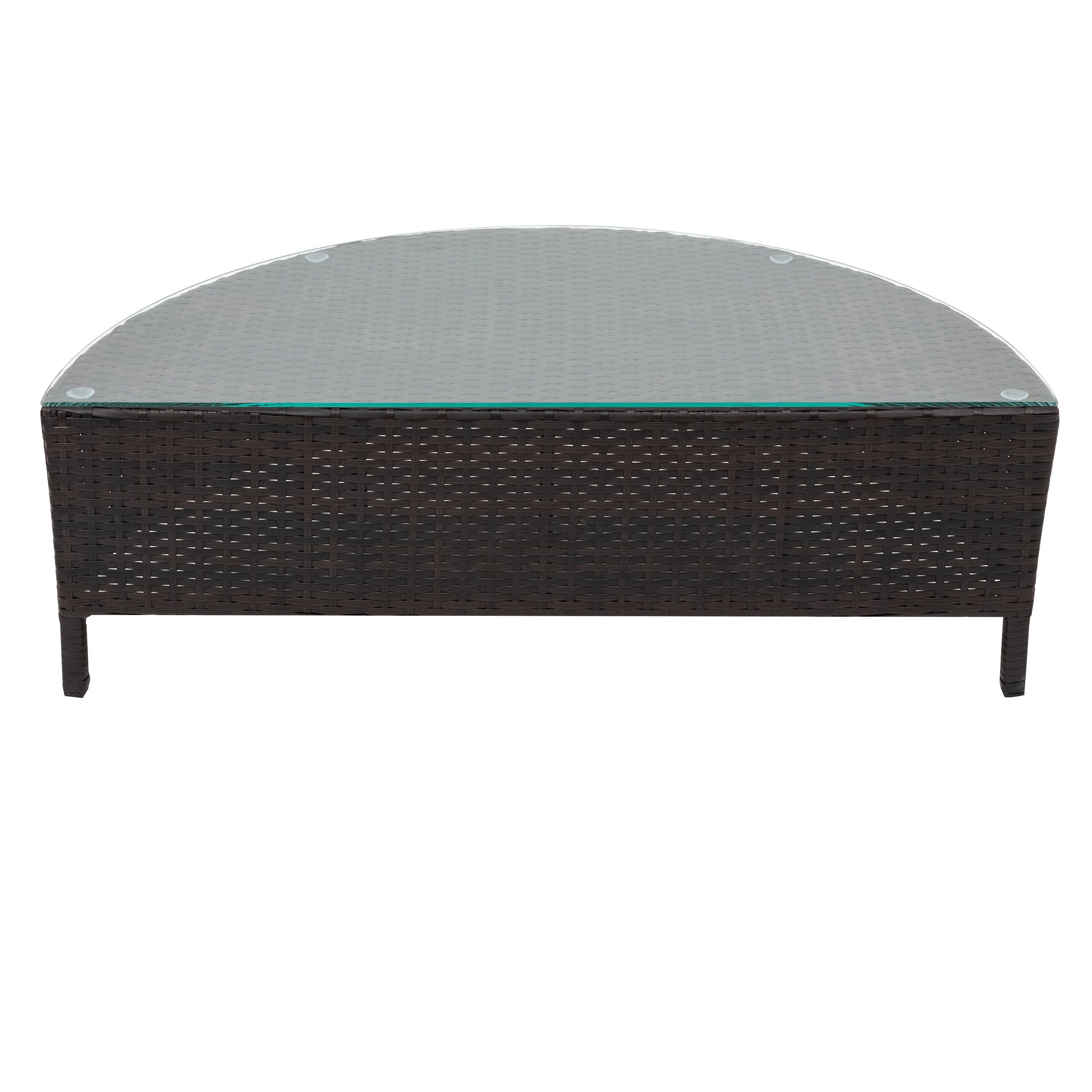 Home > 5 Pieces All-Weather Brown PE Rattan Wicker Sofa Set Outdoor Patio Sectional Furniture Set Half-Moon Sofa Set with Tempered Glass Table