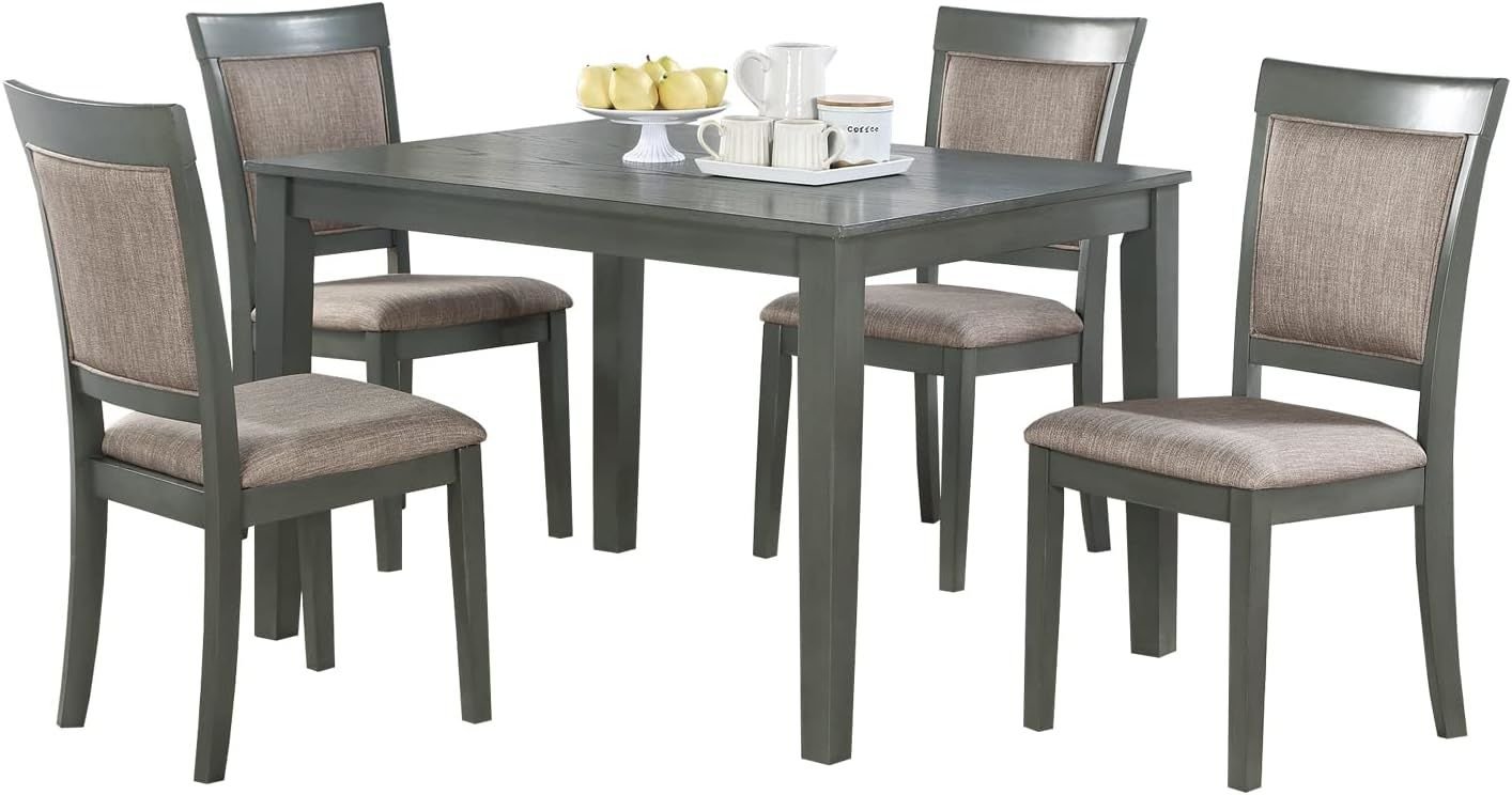 5pc Dining Room Set Dining Table w wooden Top Cushion Seats Chairs Kitchen Breakfast Dining room Furniture Oak Veneer Unique Design
