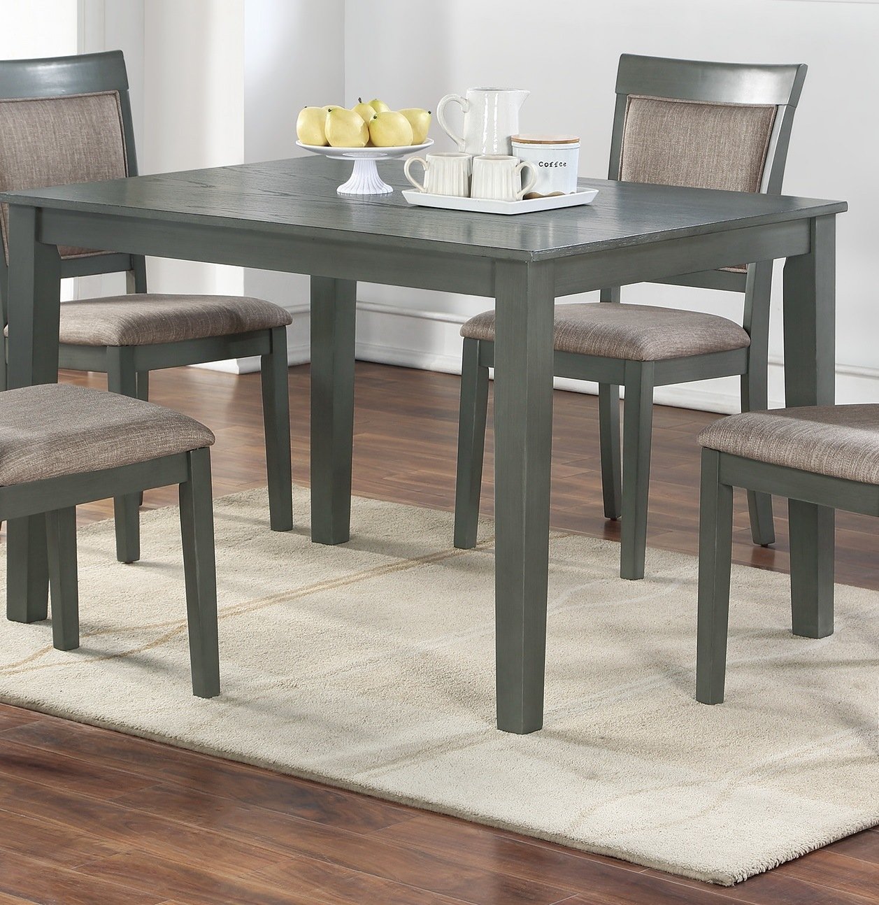 Make your dining room into a perfect hang out spot to have dinner with family and friends. Classic design with solidly constructed wooden top, the beautiful dining table also comes with four sturdy chairs with cushion that provides comfort.