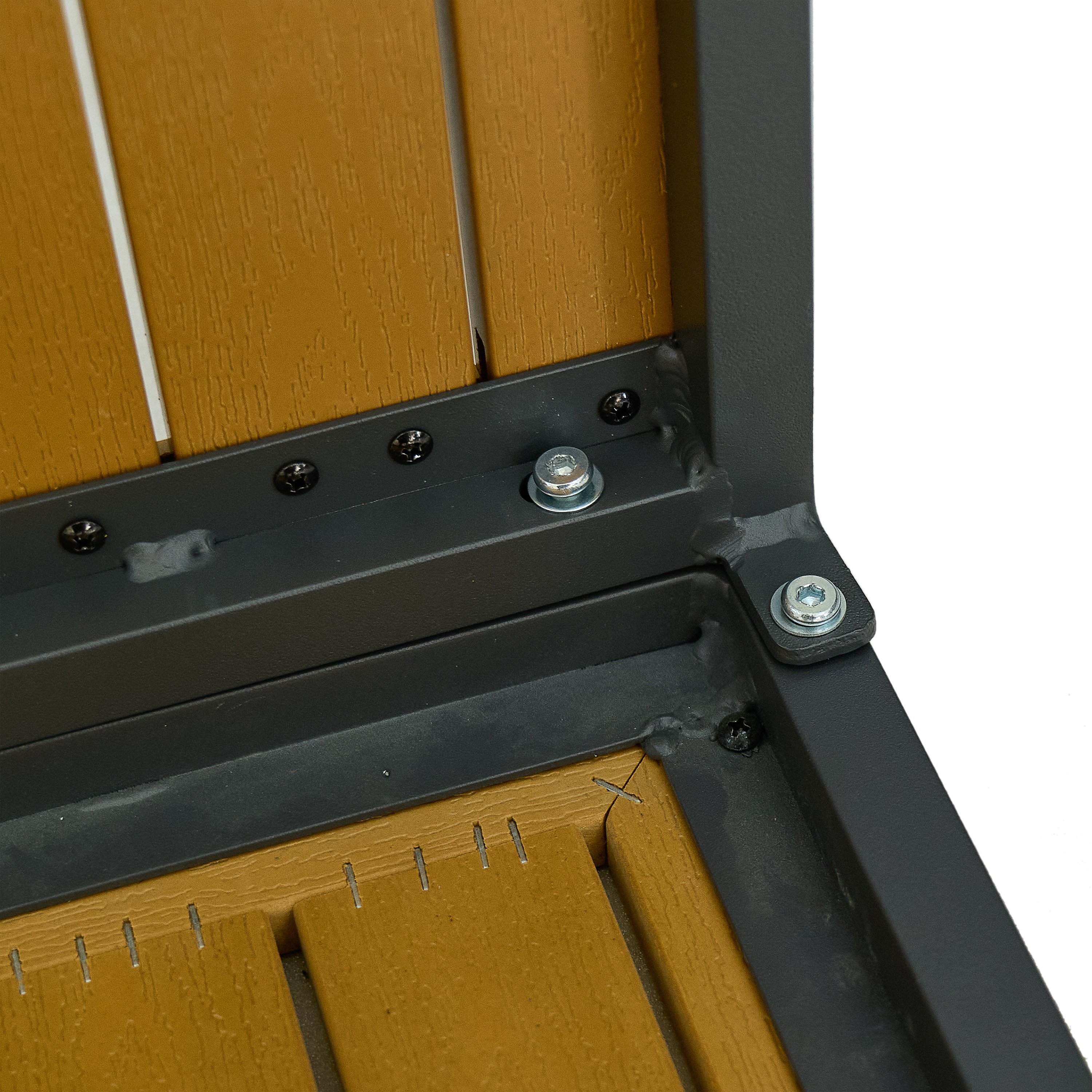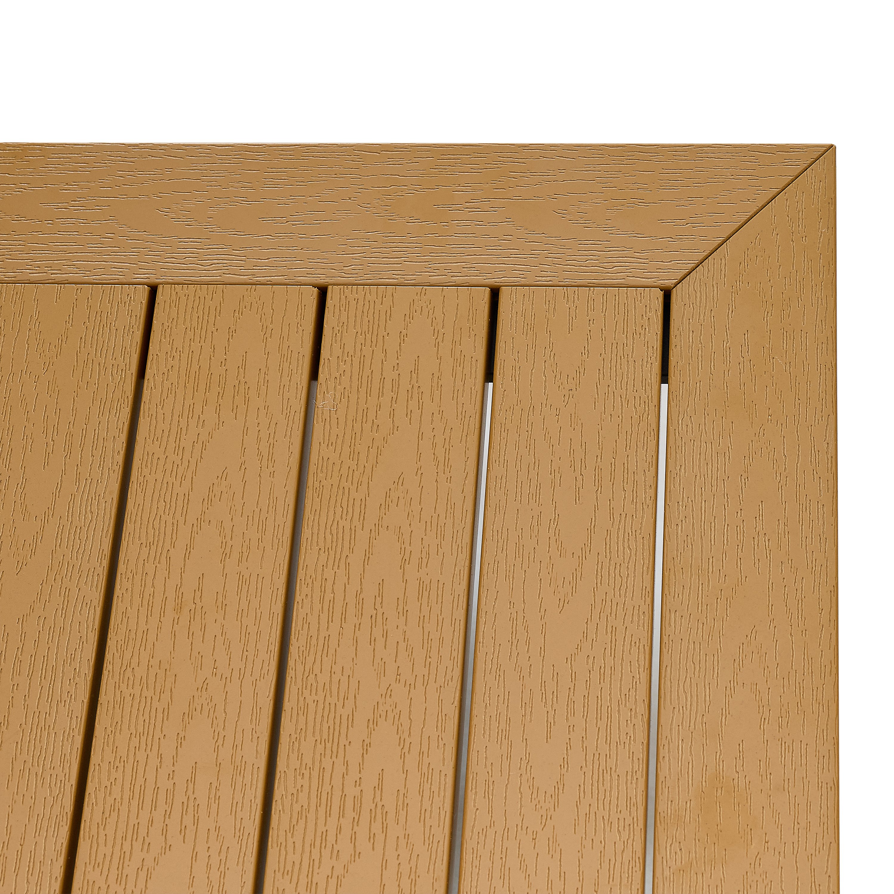 The L-shaped sectional design features two additional side tables that increase space for items; The top of the side table is made from plastic wood, which adeptly holds magazines, drinks and so on