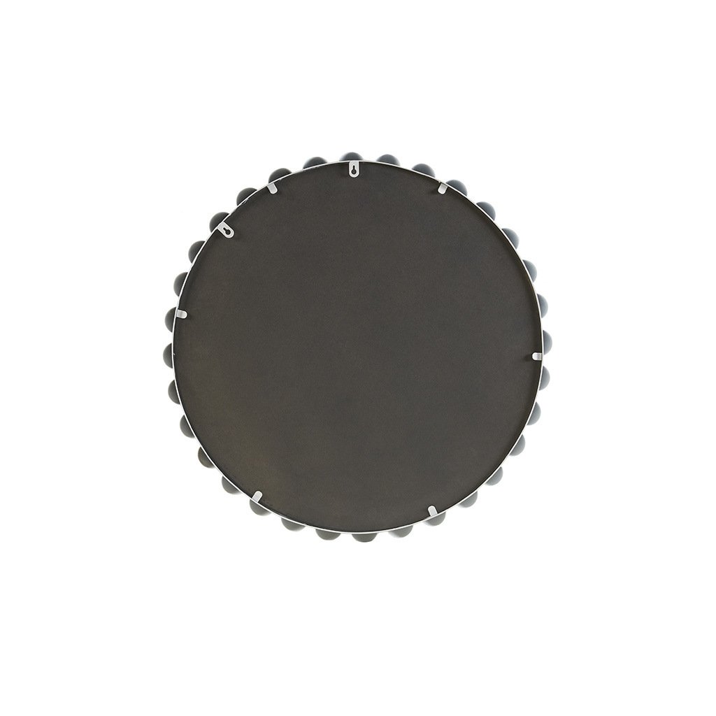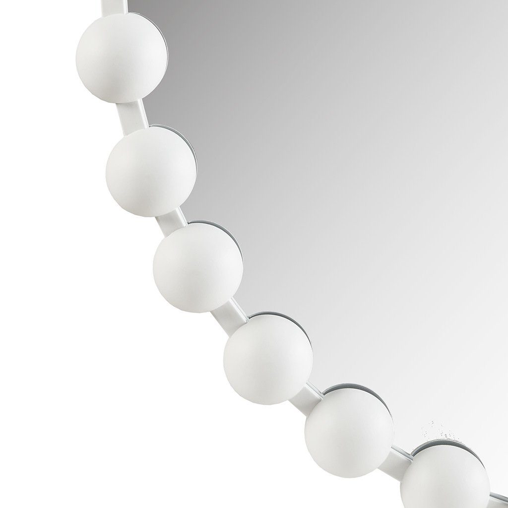DescriptionReimagine your space with our Madison Park Signature Marlowe Beaded Round Wall Mirror. This round mirror features a stylized spherical iron frame finished with matte white foil, creating a bold and glamorous allure. The keyhole hook fixture on the back of the mirror allows for effortless hanging on your wall. Measuring 27x27" easily incorporate this mirror into any small space, bedroom, or entryway - for the perfect combination of modern glam and flair. Wipe clean with damp cloth and handle with care.Product Details27" DiaOverall:27"Dia x 1.75"DMirror:24.3"DiaMaterialIron: 45%Mirror: 45%MDF: 10%