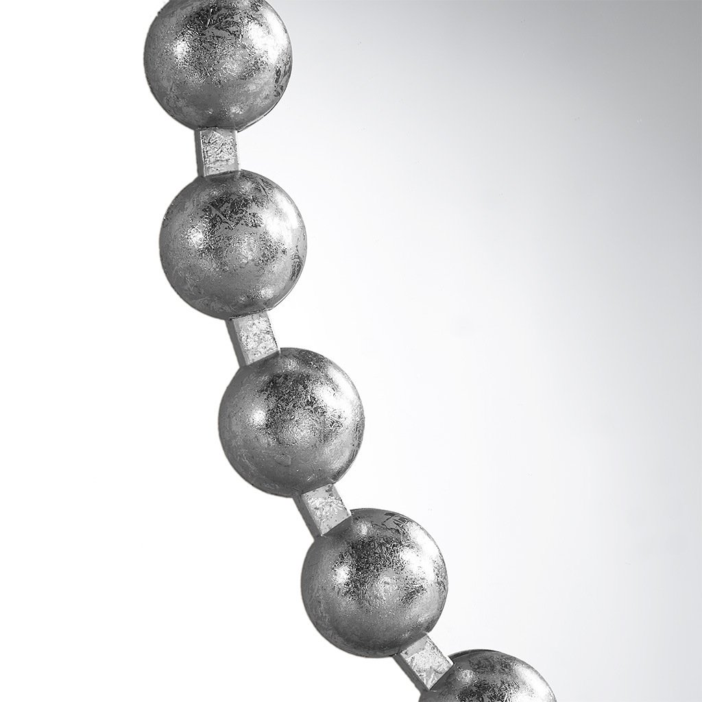 DescriptionReimagine your space with our Madison Park Signature Marlowe Beaded Round Wall Mirror. This round mirror features a stylized spherical iron frame finished with an antique metallic silver foil, creating a rich sheen and light speckled pattern effect. The keyhole hook fixture on the back of the mirror allows for effortless hanging on your wall. Incorporate this wall decor mirror into any room or space, for the perfect combination of modern glam and flair. Wipe clean with damp cloth and handle with care.Product Details36" DiaOverall:36"Dia x 1.8"DMirror:33.8"DiaMaterialIron: 45%Mirror: 45%MDF: 10%