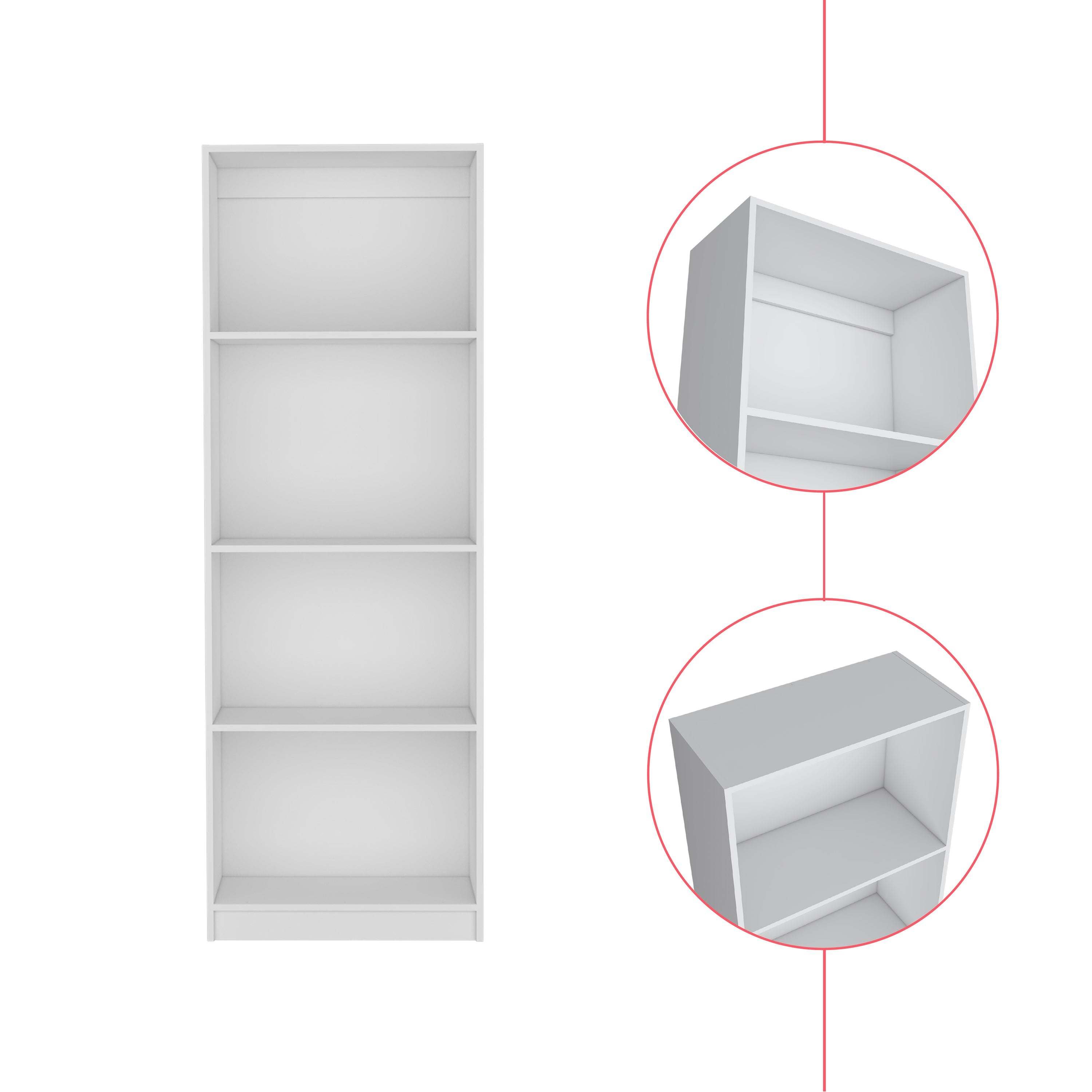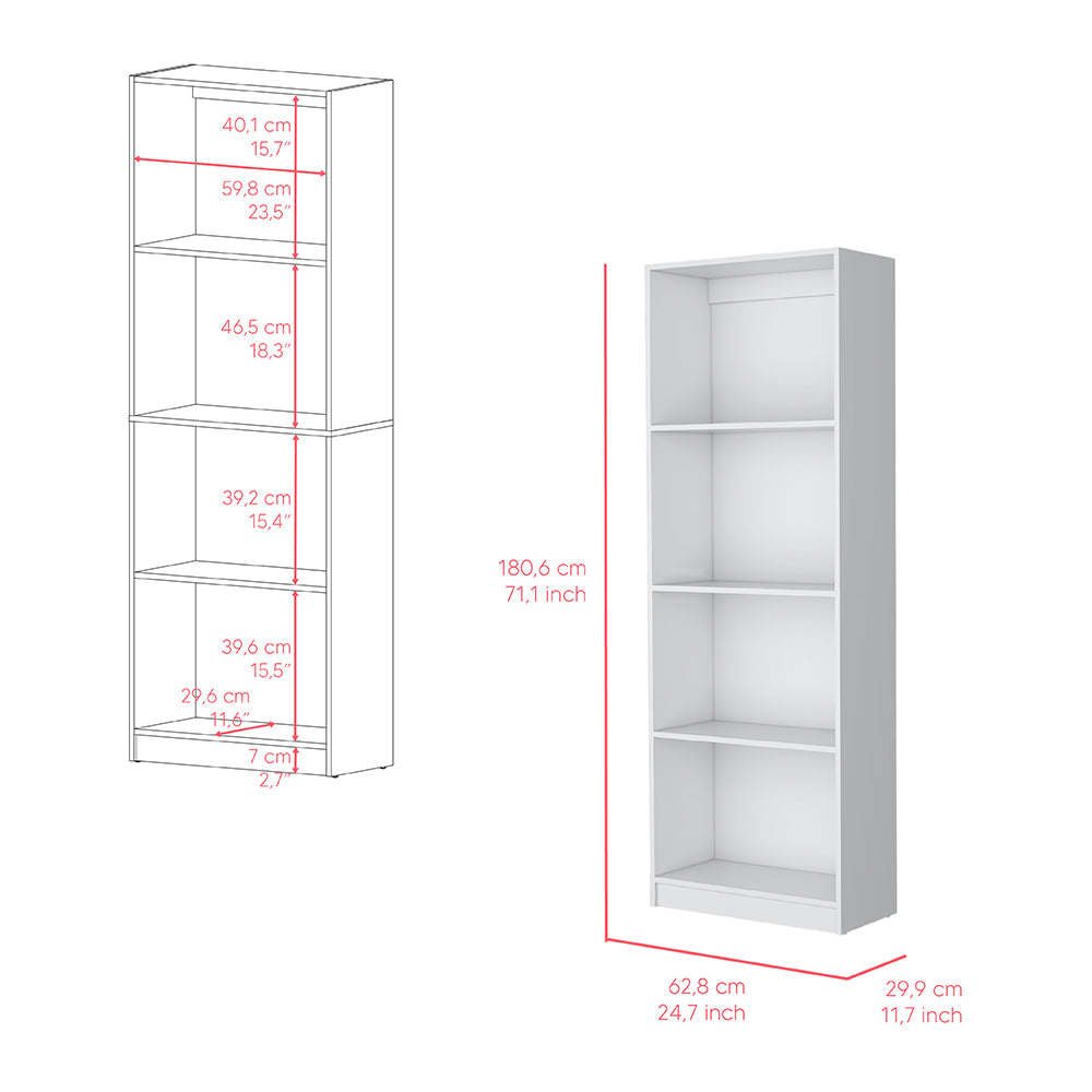 Elevate your living space with the Bookcase Benzoni, where refined craftsmanship intertwines with practical design. Four generously proportioned shelves, detailed at 15.7"H x 18.3"H x 23.5"W, stand ready to house your curated collection of literature, keepsakes, and artful decorations. Impeccably crafted from manufactured wood, it exudes strength and understated elegance. Whether you're looking to organize your cherished books or showcase your decor pieces, this bookcase delivers on all fronts. Available in black, white, snow white and matt gray/white finishes.Dimensions:Height: 71,1" Width: 24,7'Depth: 11,7'Furniture Type: Ready to assemble (full assembly required).Certifications: CARB phase II compliant – TSCA Title VI Compliant.Warranty: 1-year warranty coverage in wooden parts- 1-year warranty coverage in hardware pieces since its manufacturing date found in the lot number printed in the product box.