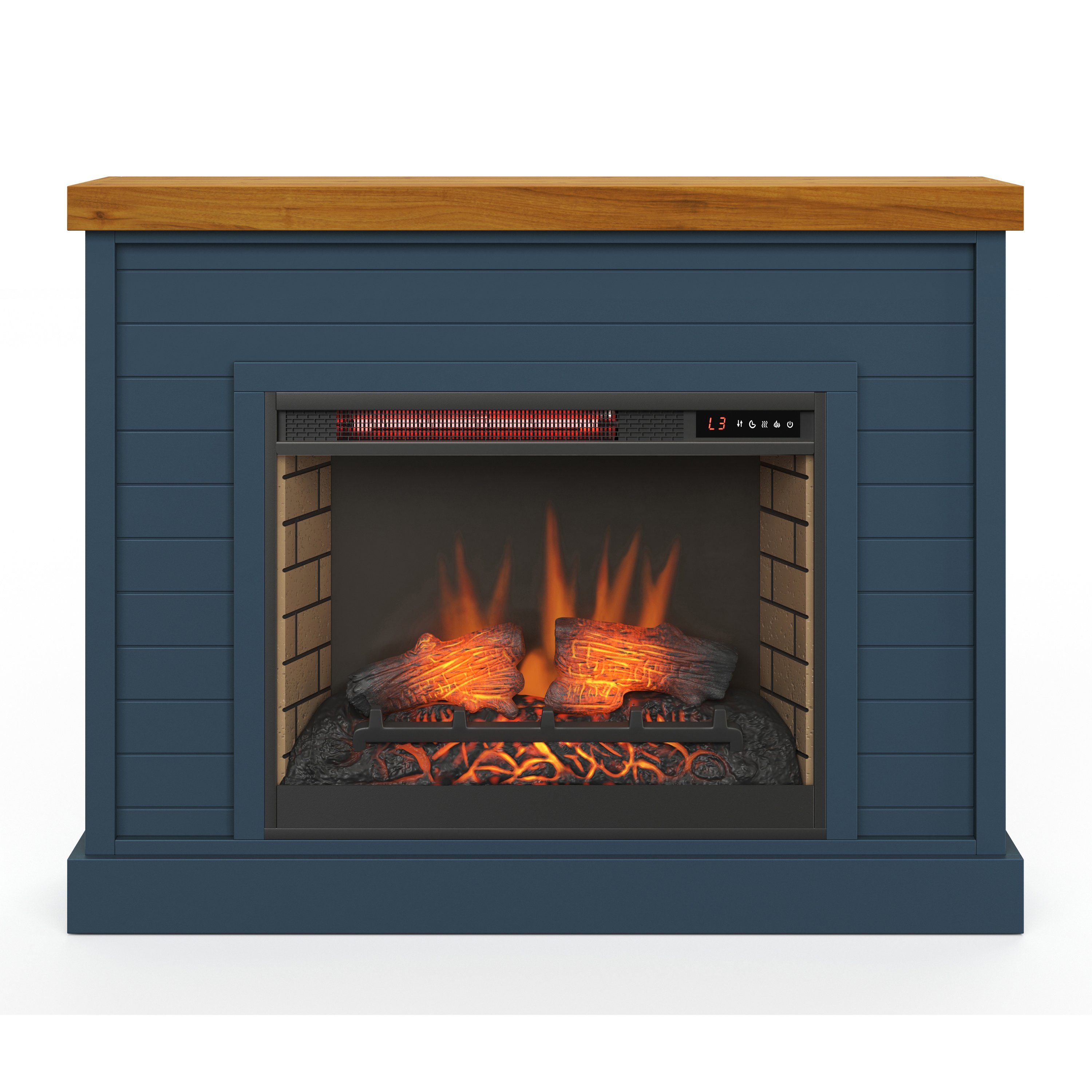 Bridgevine Home Washington 48 inch Fireplace with Mantel, Blue Denim and Whiskey Finish