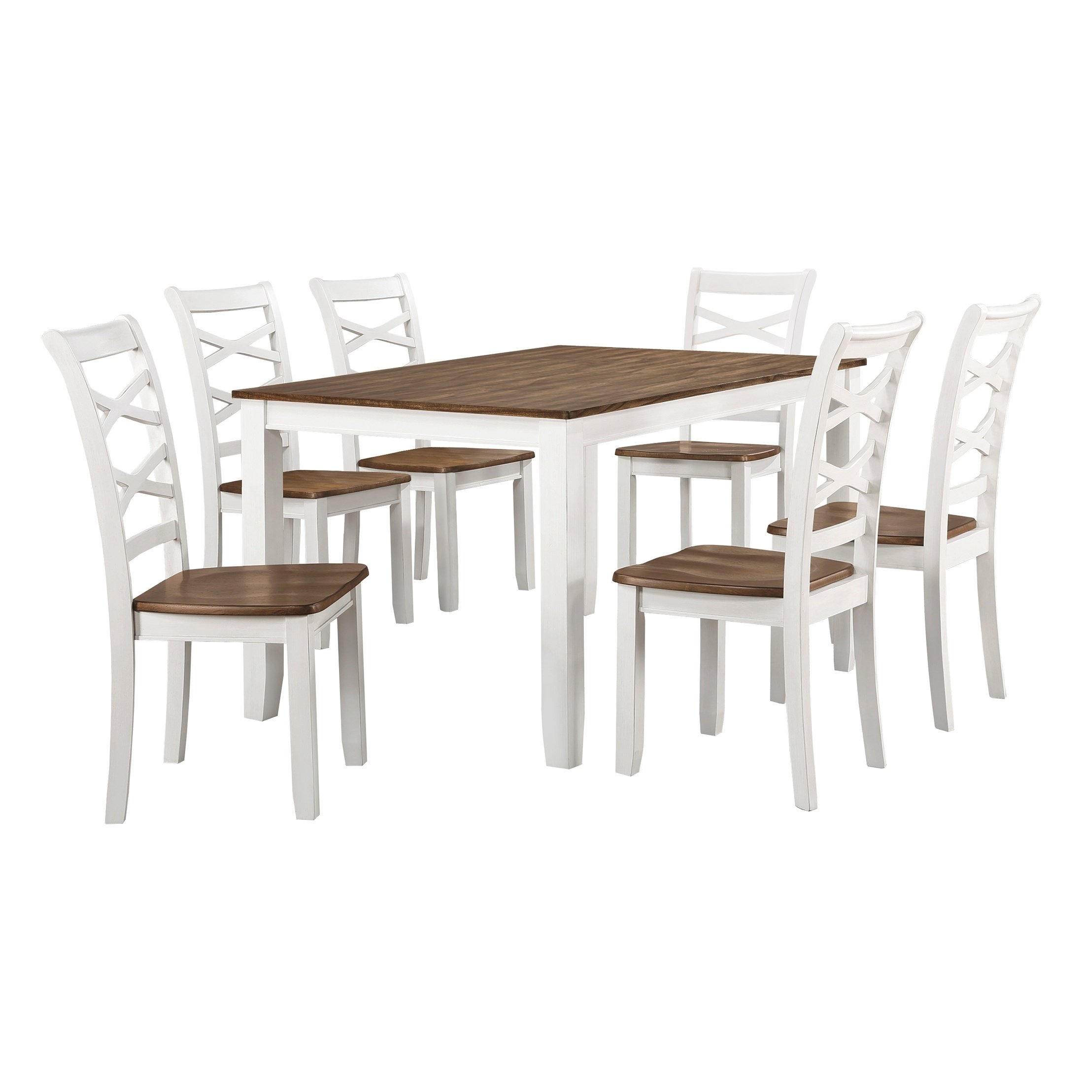 Cherry and White Finish 7pc Dining Set Table and 6 Side Chairs Set Double X-Back Design Wooden Casual Country Style Dining Room Furniture