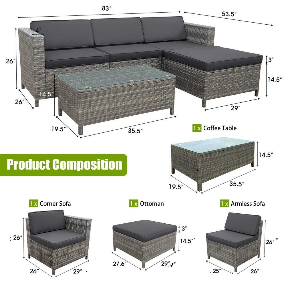 Product Material:The 5 piece wicker outdoor patio furniture set is made of hand-woven rattan, and the sectional sofa furniture is designed in a modern and elegant way.