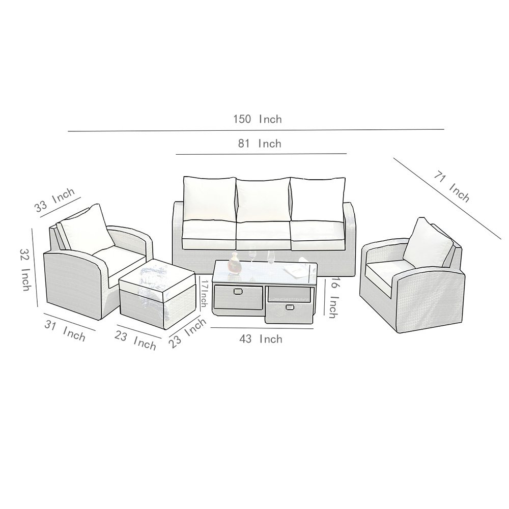 - Three seater sofa: 31.89 "L x30.71"W x80.71"H with 4.72" cushion and back cushion