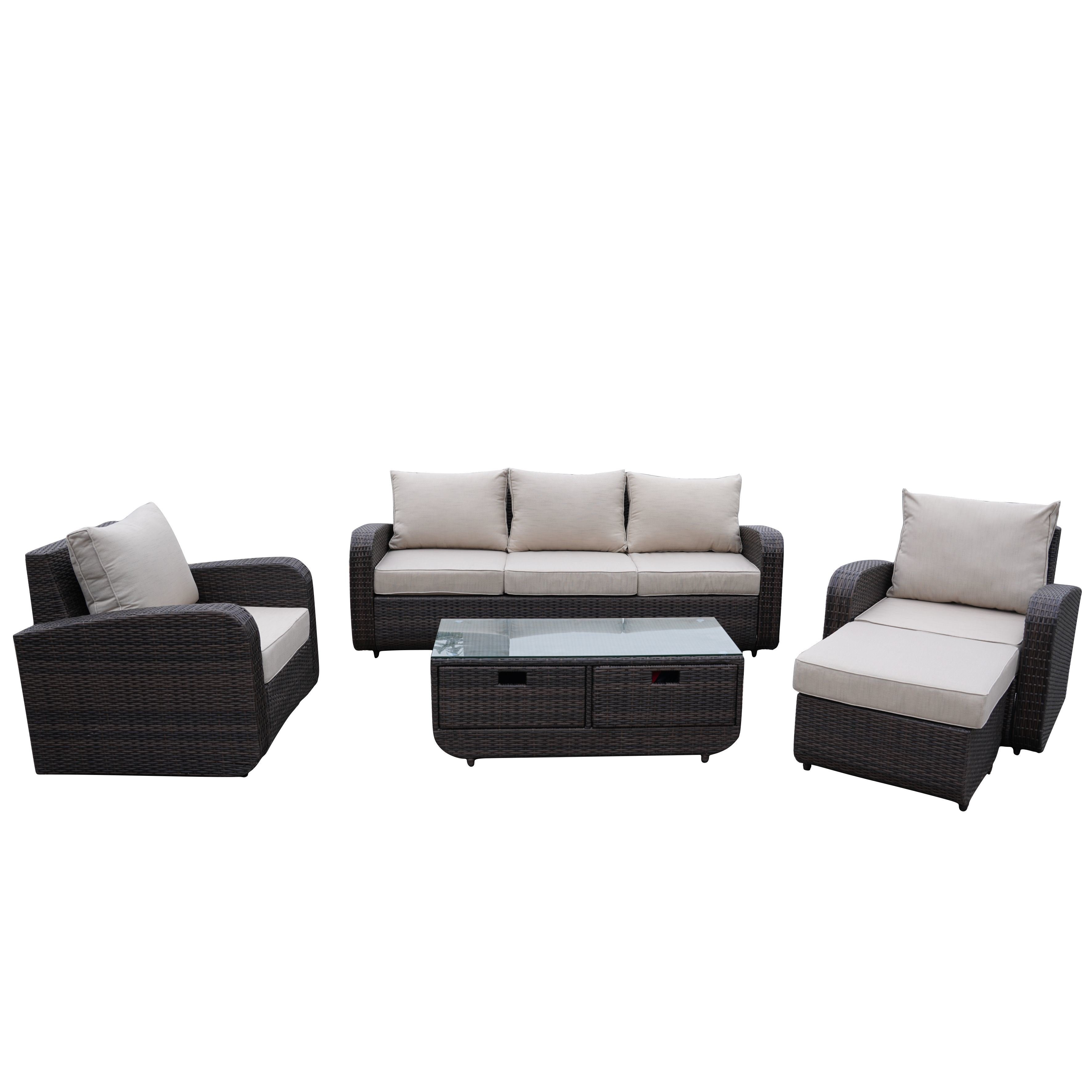 Home > Direct Wicker 5-Piece Outdoor Rattan Furniture Patio Conversation Set with Cushion