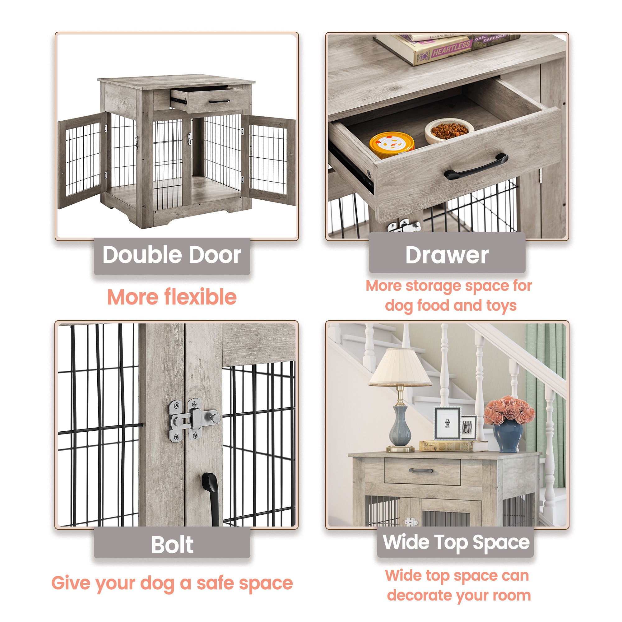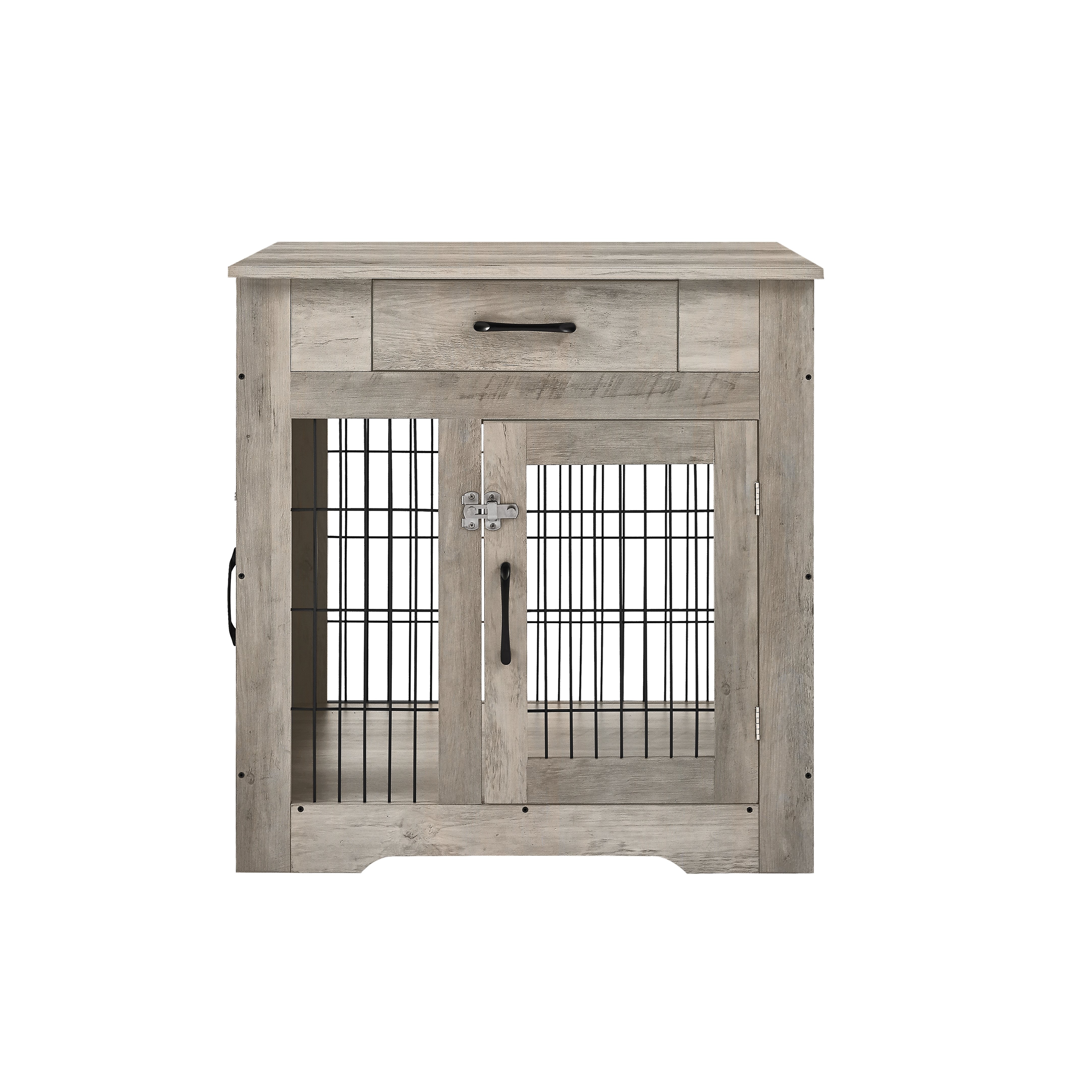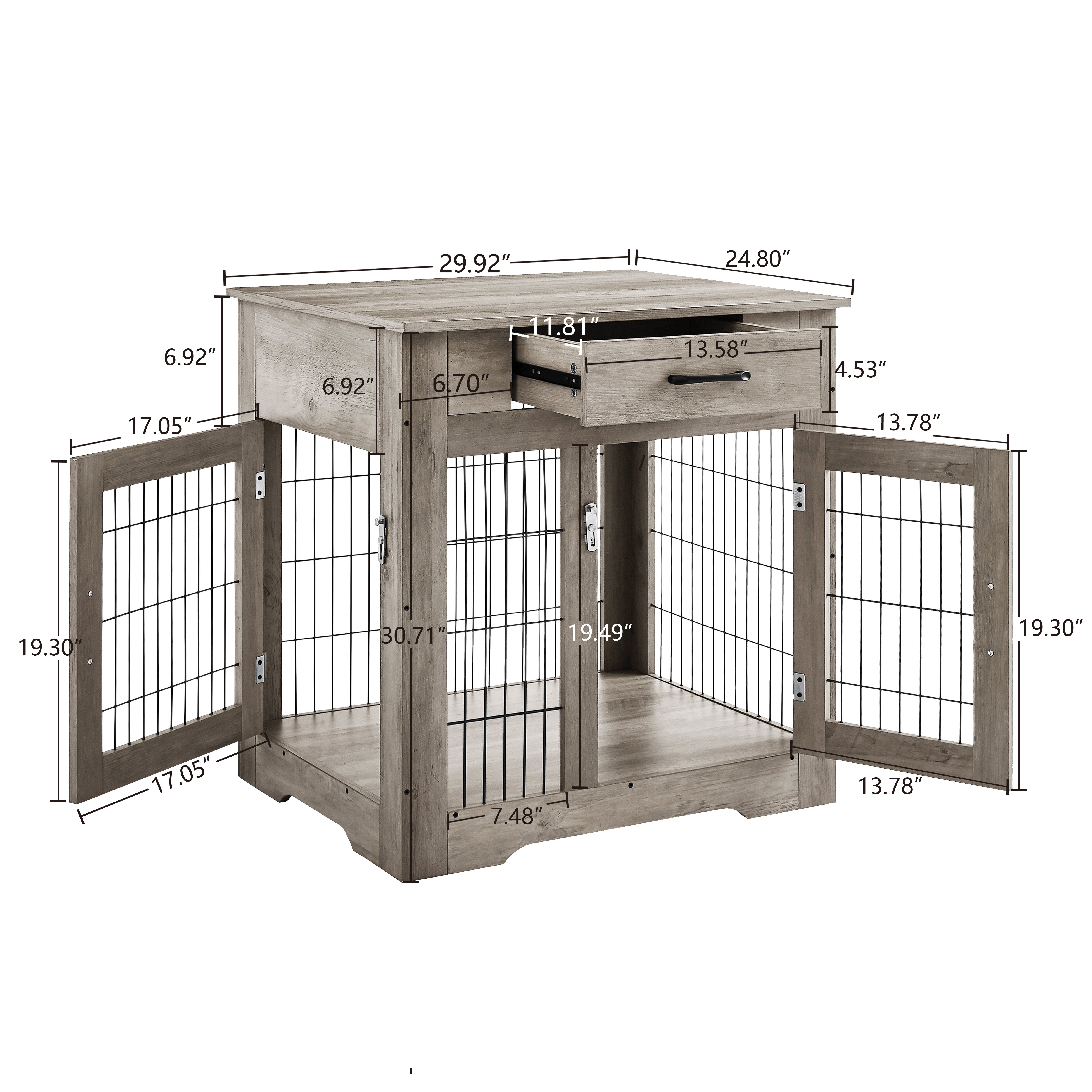 Furniture Style Dog Crate End Table with Drawer, Pet Kennels with Double Doors, Dog House Indoor Use, Grey, 29.9'' W x 24.8'' D x 30.71'' H.