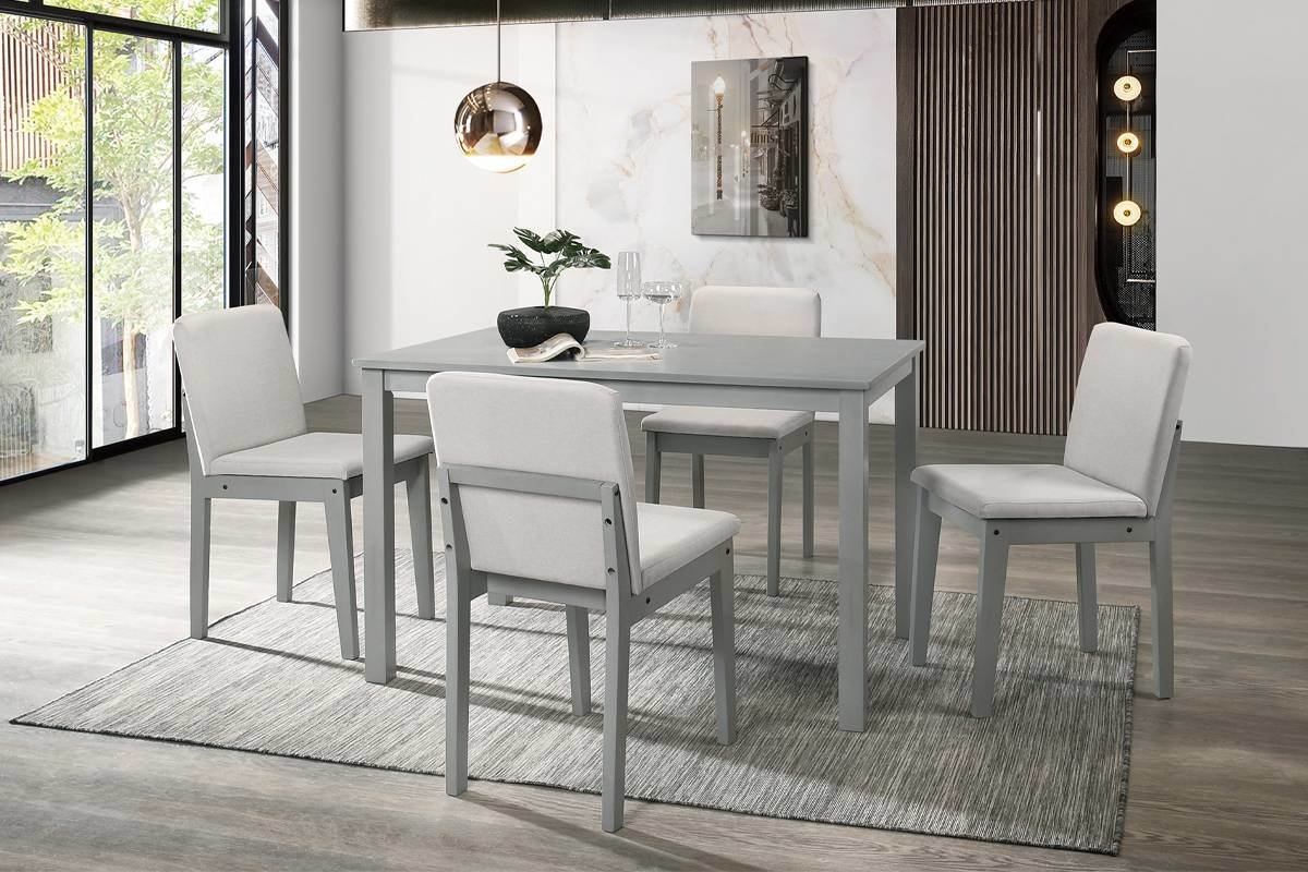 Home > Grey Finish 5pc Dining Room Set Dining Table 4x Chairs Beige Fabric Chair Seat Kitchen Breakfast Dining room Furniture Rubberwood Veneer Unique Design