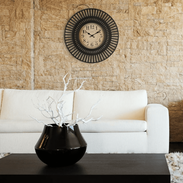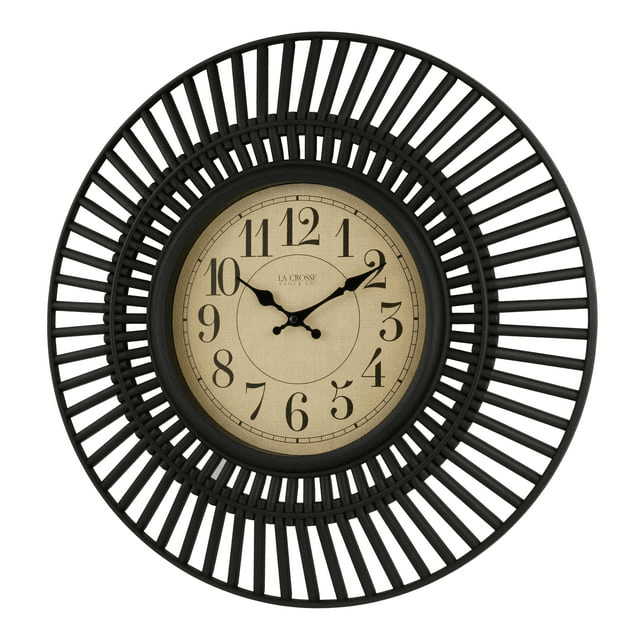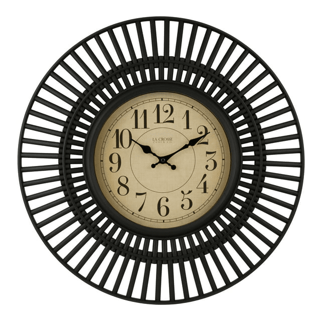 Elegant in its simplicity, la crosse clock’s 20-inch covington quartz wall clock will add a style to the room. With a precise quartz movement on a 9-inch dial, it will keep you on time. Large black matted framework with a cut-out design and antique-colored face and 1.25-inch arabic numbers is viewable from a distance. Battery operated and lightweight plastic construction makes it easy to hang onto almost any wall.