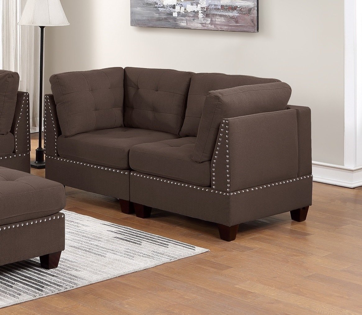 Home > Living Room Furniture Tufted Corner Wedge Black Coffee Linen Like Fabric 1pc Cushion Nail heads Wedge Sofa Wooden Legs