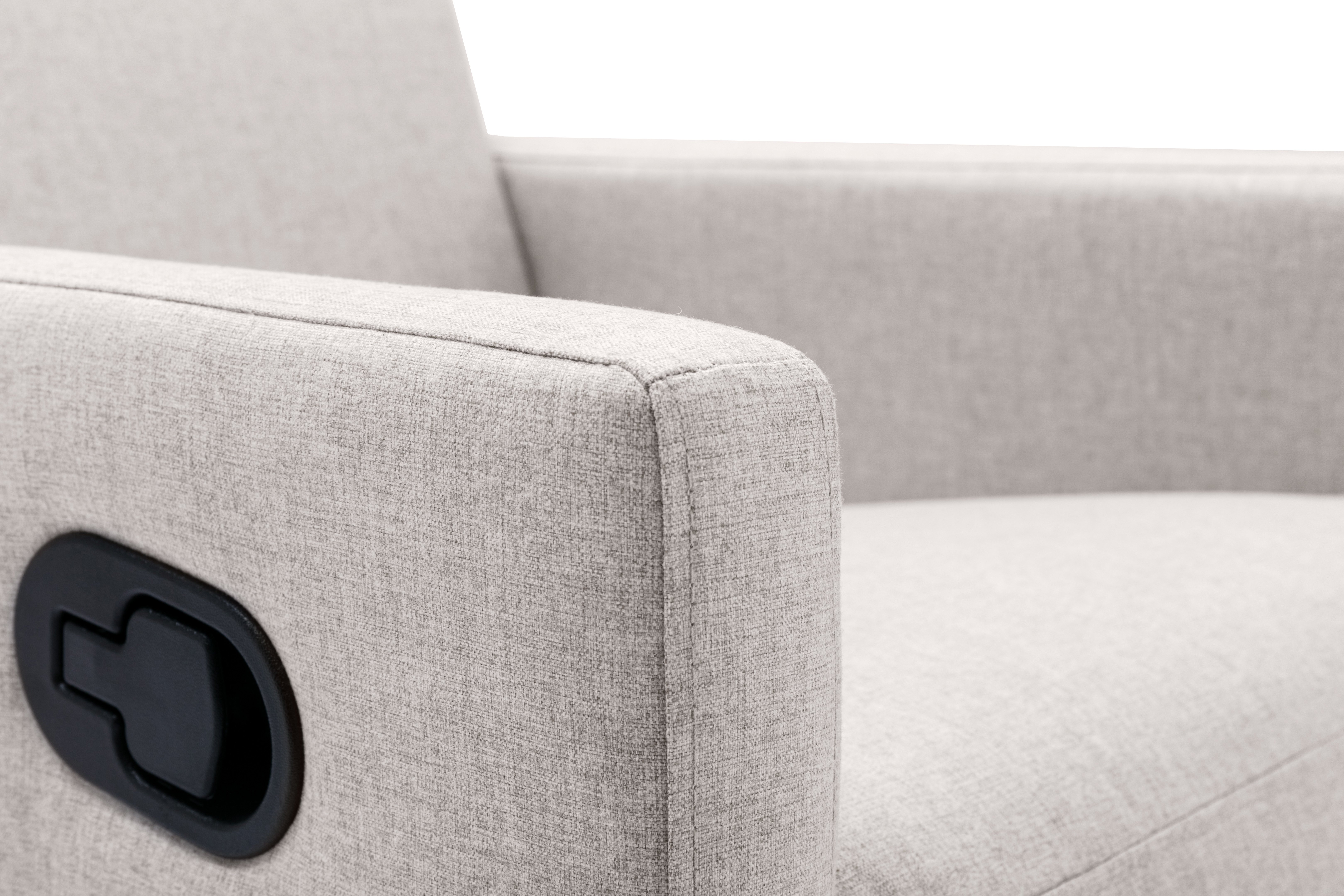 Easy operationWith a silent built-in reclining mechanism that can be operated using one hand.Nursery ChairFull Reclined60.25"DWeight Capacity330 LBSFabric MaterialLinenLeg MaterialMetalColorTanAssembly RequiredYesPackage Number1Country of OriginChina