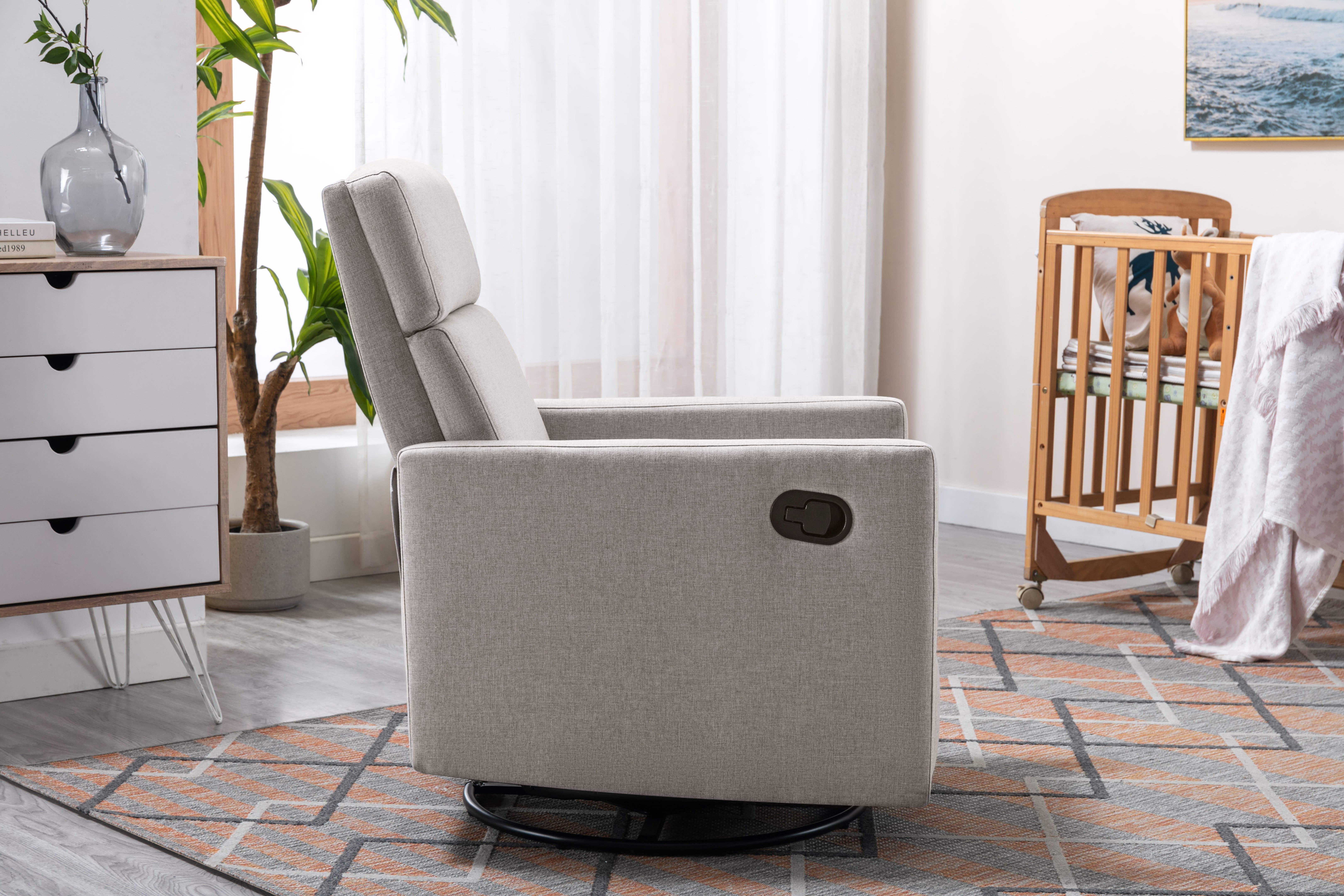 Relax and recline after a long day in this sleek power recliner. It's built on a Swivel Glider Nursery Chair has been designed for mamas and papas with a high plush pillow back for head and neck support. The smooth gliding, 360-degree swivel base allows you to gently lull your babe to sleep. It's a stylish but also more sustainable choice for the modern nursery.Photo may be slightly different from the actual item in terms of color due to the monitor's display.