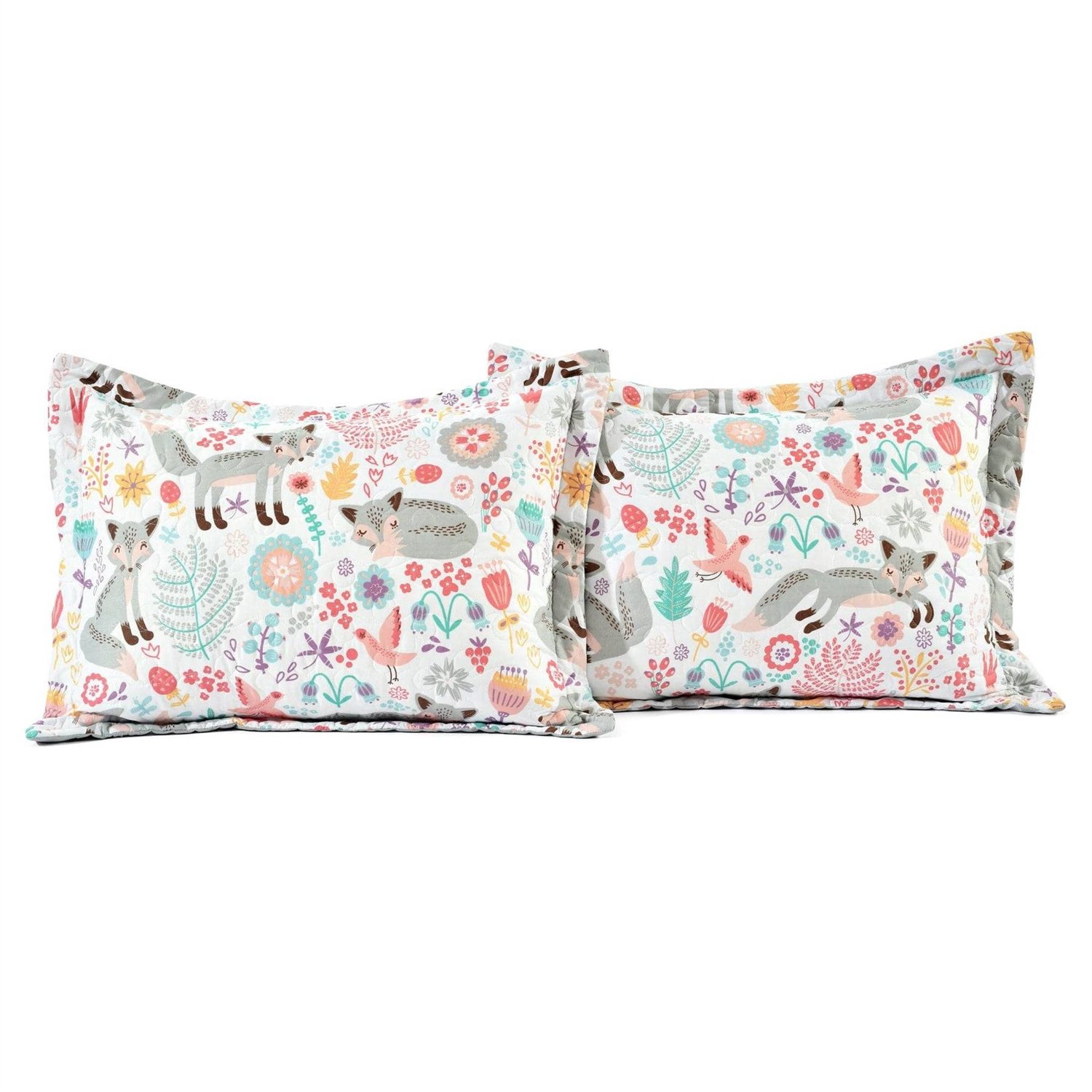 Home > Pink Teal Orange Grey 6 Piece Floral Foxes Daybed Cover Bedding Set