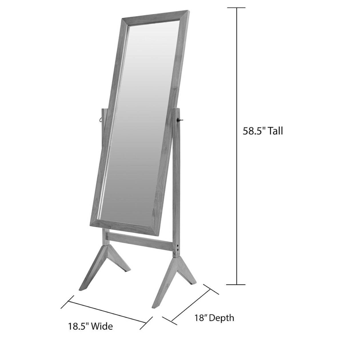 This Modern Full Length Freestanding Bedroom Floor Cheval Mirror in Cherry would be a great addition to your home. It has a white color Wood cheval mirror, Dimensions: 58.5"H x 18.5"W x 2"D, Mirror Dimensions: 43"H x 14"W, Mirror tilts for various angles, Versatile rectangle design, Easy assembly required.