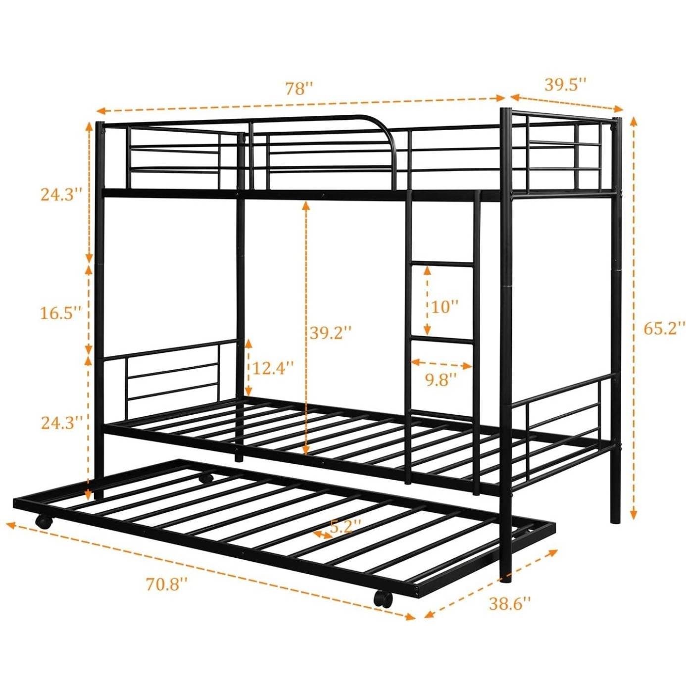 • Twin over Twin Bunk bed with Trundle Bed in Black Metal Finish