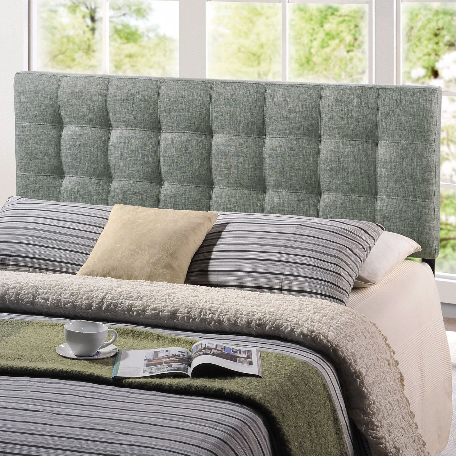 • King size Grey Fabric Upholstered Headboard with Modern Tufting