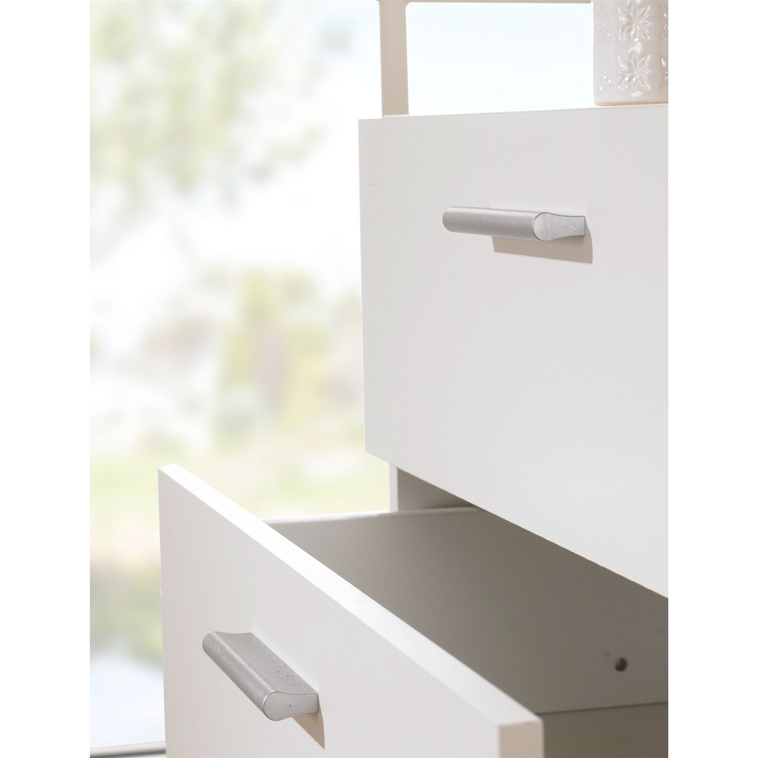This Contemporary Style White 4-Drawer Bedroom Bureau Storage Chest would be a great addition to your home. It has a contemporary style and is made of metal hardware.
