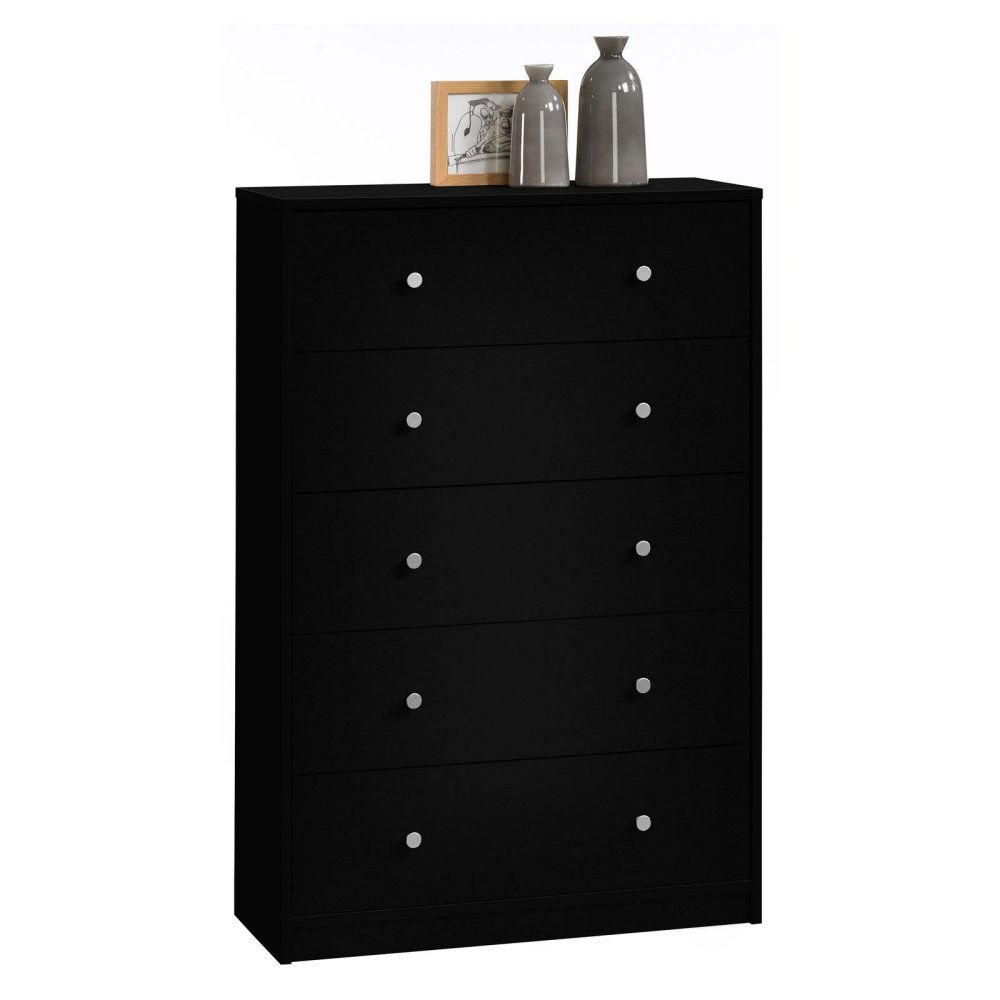 Modern Bedroom Storage 5-Drawer Chest in Black Wood Finish