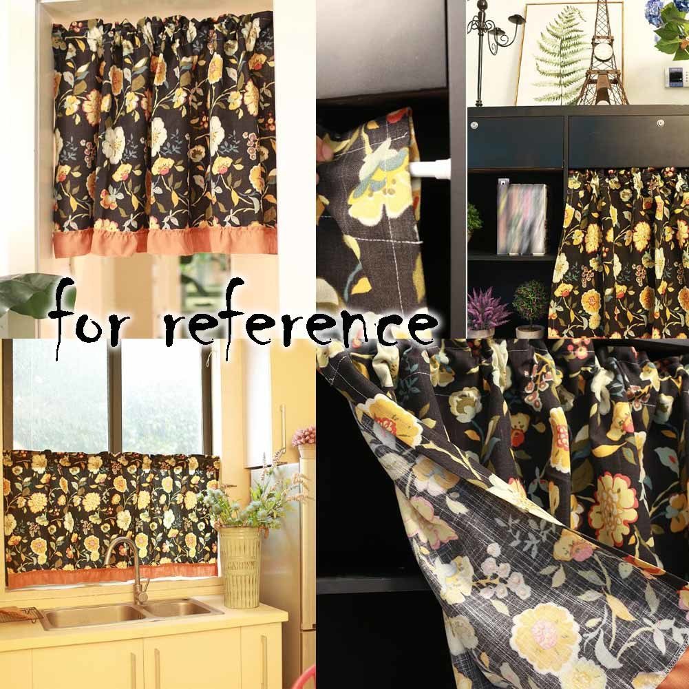 Retro Flower Cotton Cafe Kitchen Curtains Half Curtain Decorative Door Curtain, Black Retro Flower Cotton Cafe Kitchen Curtains Half Curtain Decorative Door Curtain, Black