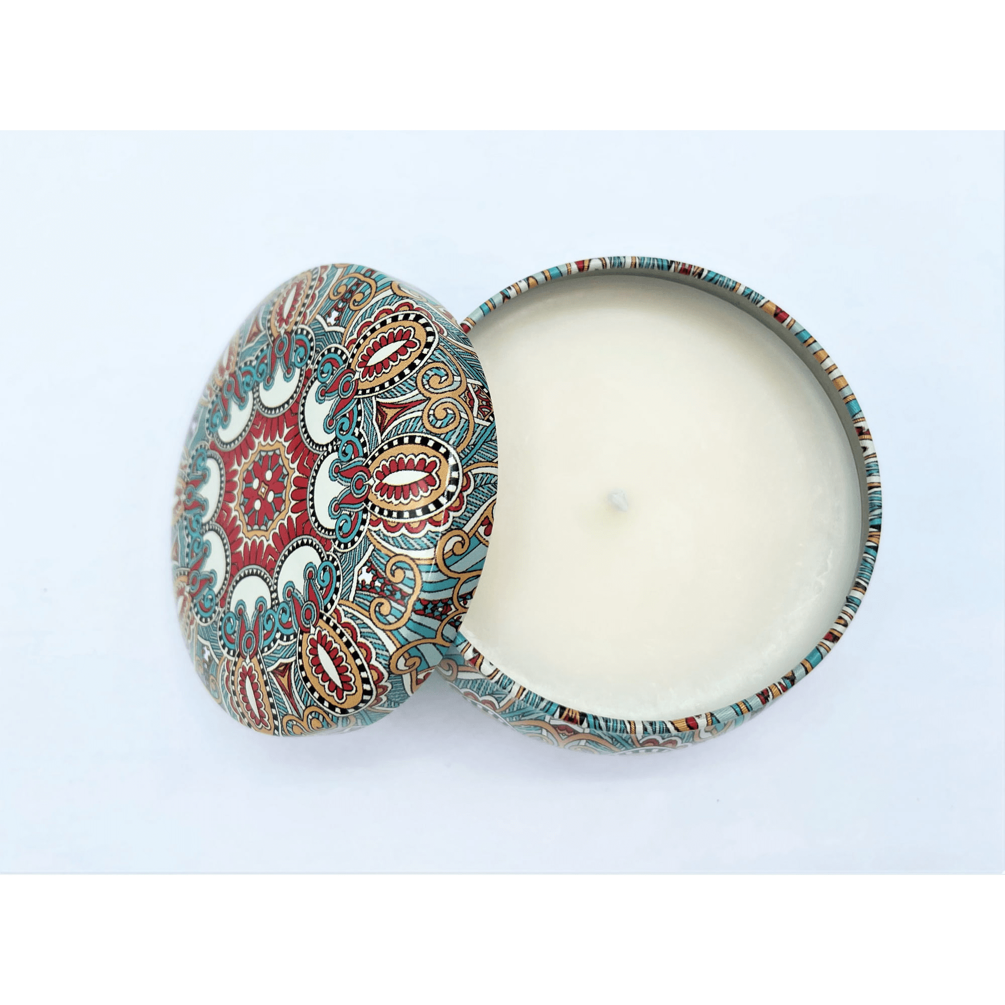 Decorative giftable metal tin - this candle comes in a beautiful multicolor metal tin that's perfect for gift-giving! The sleek design is sure to please, and the tin can be reused long after the candle is gone.