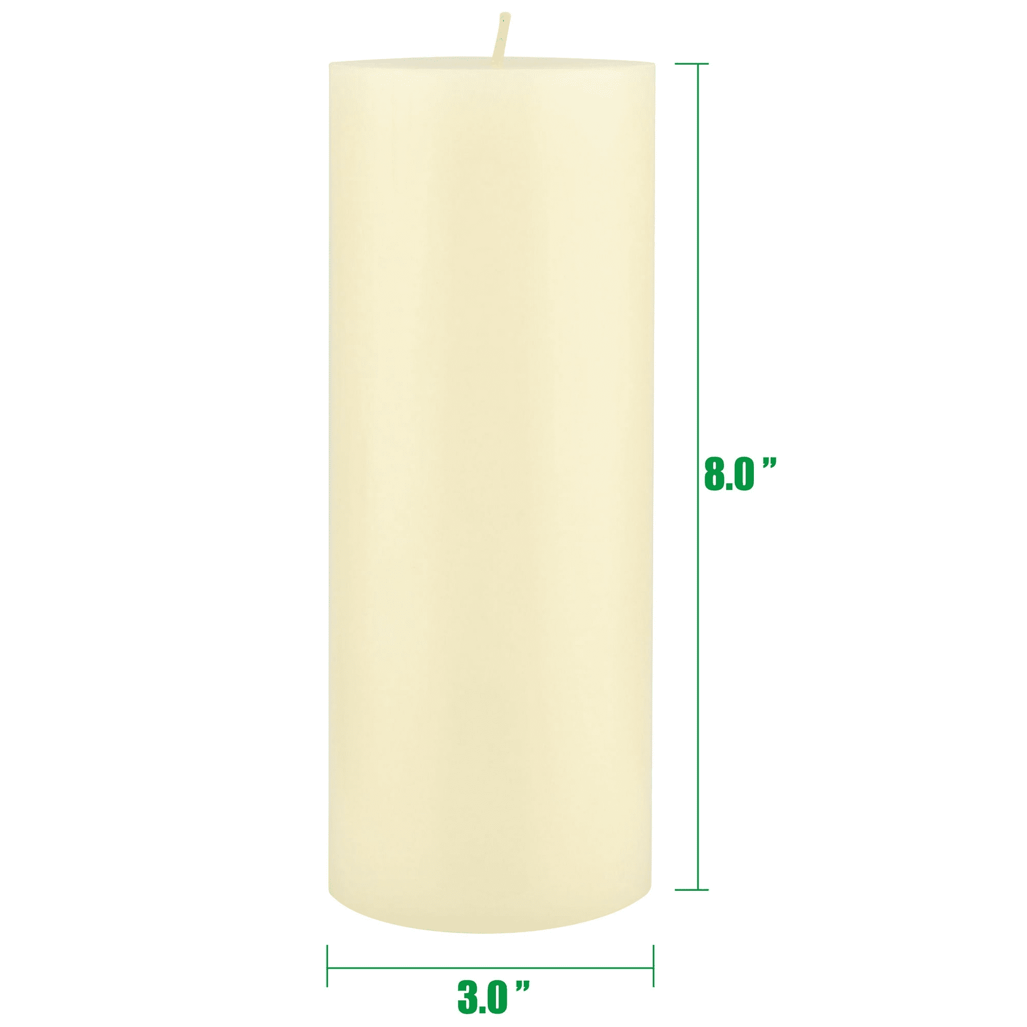 Brighten up your home with stonebriar's unscented 3" x 8" 1-wick ivory pillar candles. These pillar candles are poured with quality paraffin and feature a 110 hour extended burn time. Each candle comes with 1 lead free 100% cotton wick for a clean smoke-free burn. Candles measure 3 inches by 8 inches and are the perfect size for large and medium candle lanterns, decorative centerpieces, and mantel decoration. Pillar candles can be used with any decor style and are great as decorations for the holidays, an upscale romantic restaurant setting, weddings, or a relaxing spa atmosphere. Pillar candle set is also great to keep handy as emergency candles for power failures on stormy days.