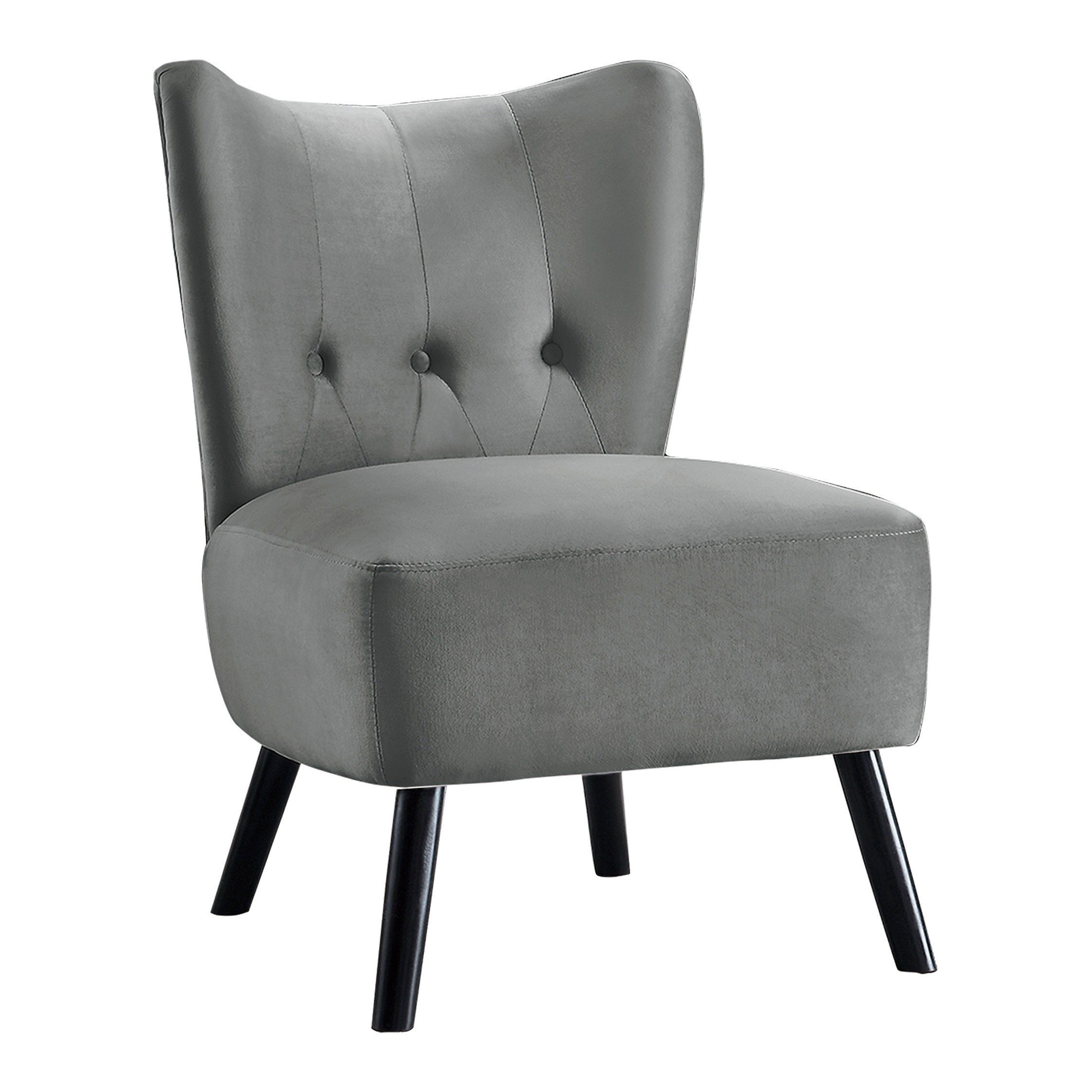 Unique Style Gray Velvet Covering Accent Chair Button-Tufted Back Brown Finish Wood Legs Modern Home Furniture